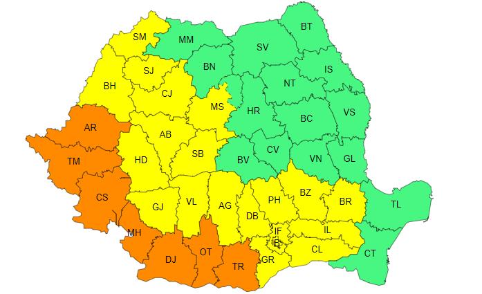 Potrivit meteorologilor ANM, în Banat, sudul Crișanei, sudul și sud-vestul Olteniei, precum și în sud-vestul Munteniei va fi caniculă și disconfort termic accentuat, iar indicele temperatură-umezeală (ITU) va depăși pragul critic de 80 de unități. Temperaturile maxime vor fi de 38...39 de grade, iar minimele de 20...22 de grade, izolat de până la 25 de grade în Dealurile de Vest și vor caracteriza o noapte tropicală.