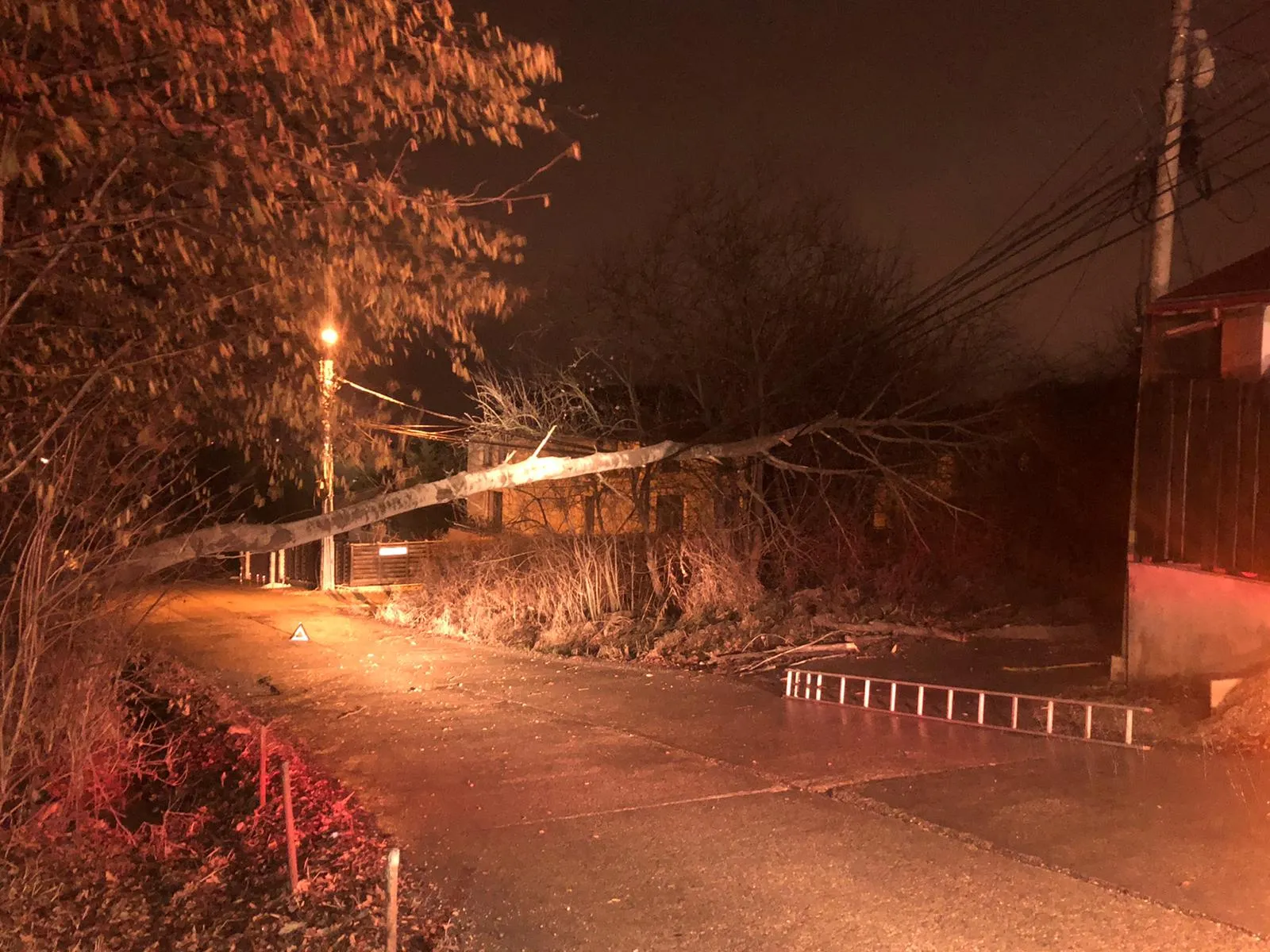 Vijeliile continuă să cauzeze probleme la Cluj-Napoca, pompierii fiind solicitați să intervină pentru a degaja un copac căzut peste firele de electricitate.