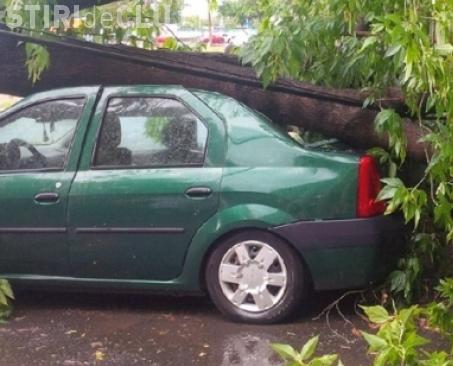 Doi copaci au fost rupți de vântul puternic de la Cluj și au căzut peste două autoturisme.