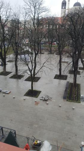 O imagine de la înălțime arată că în parcul din spatele Teatrului Național din Cluj-Napoca copacii au devenit insule în ”marea de beton”.