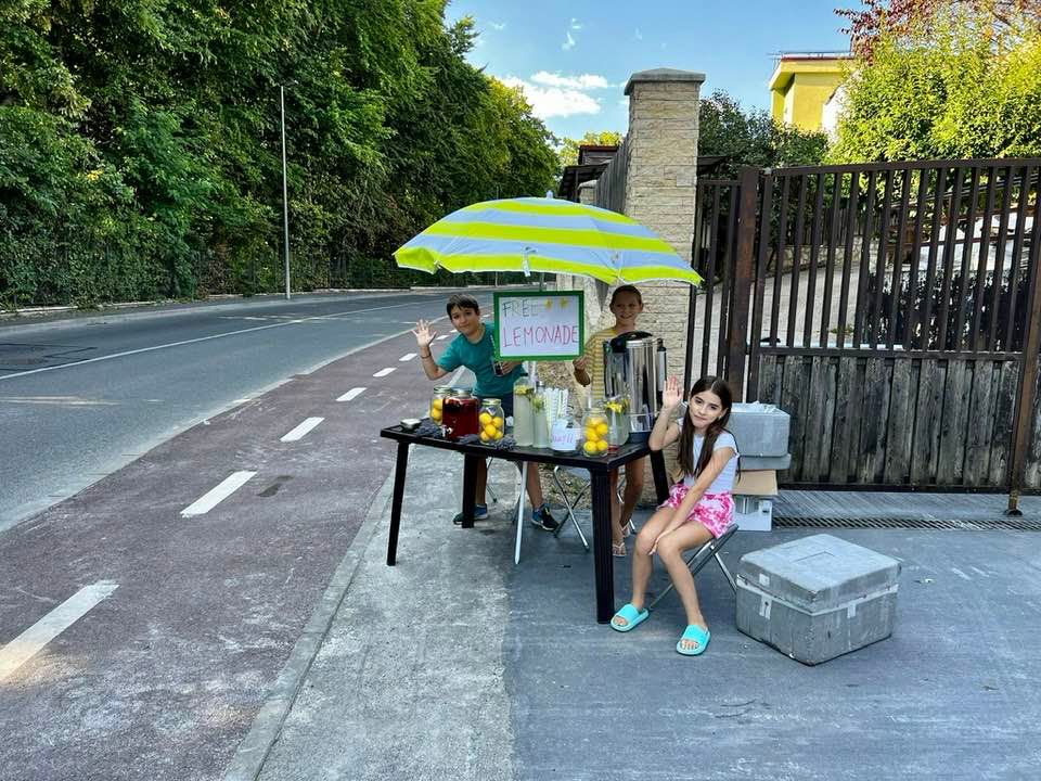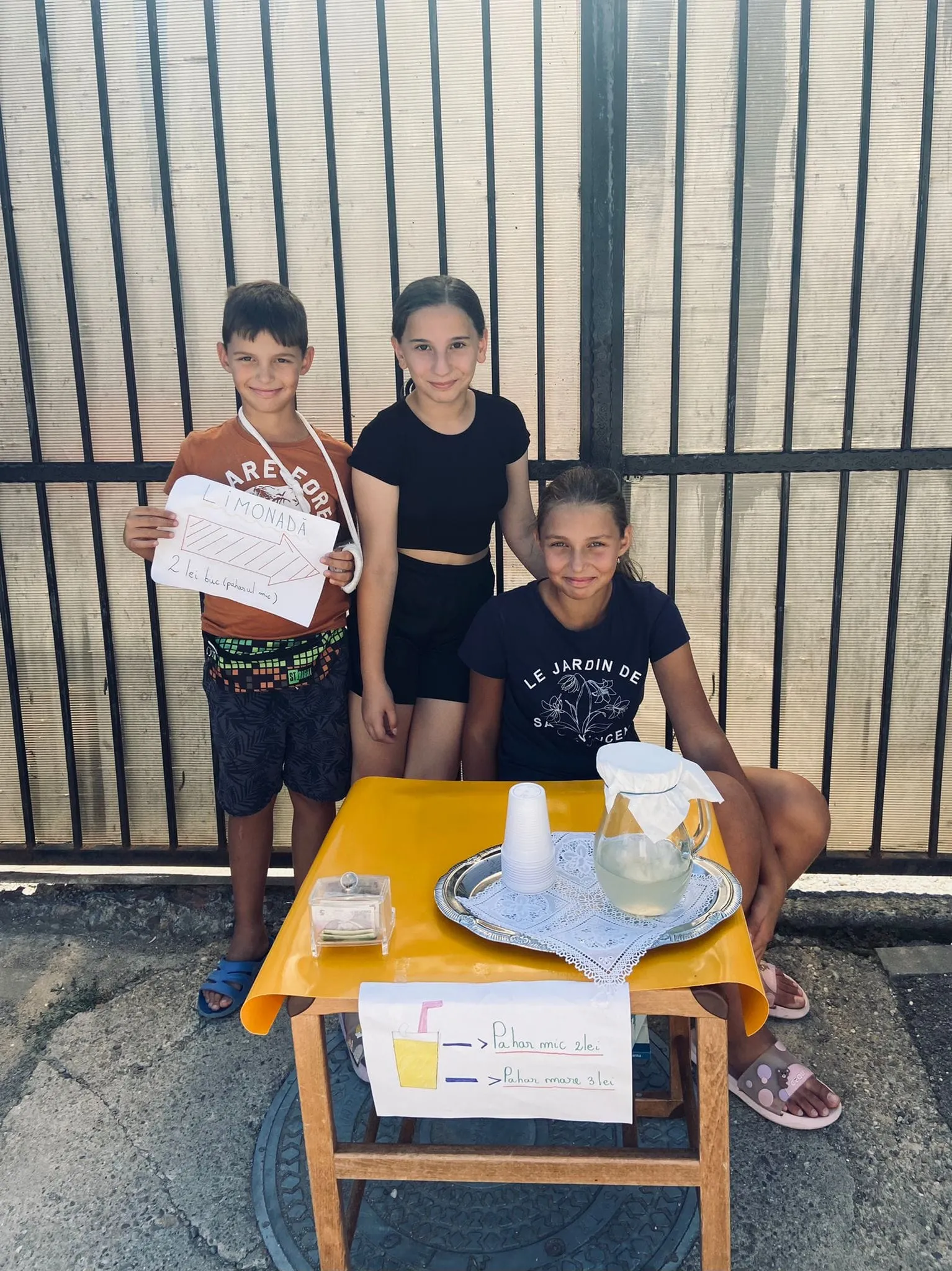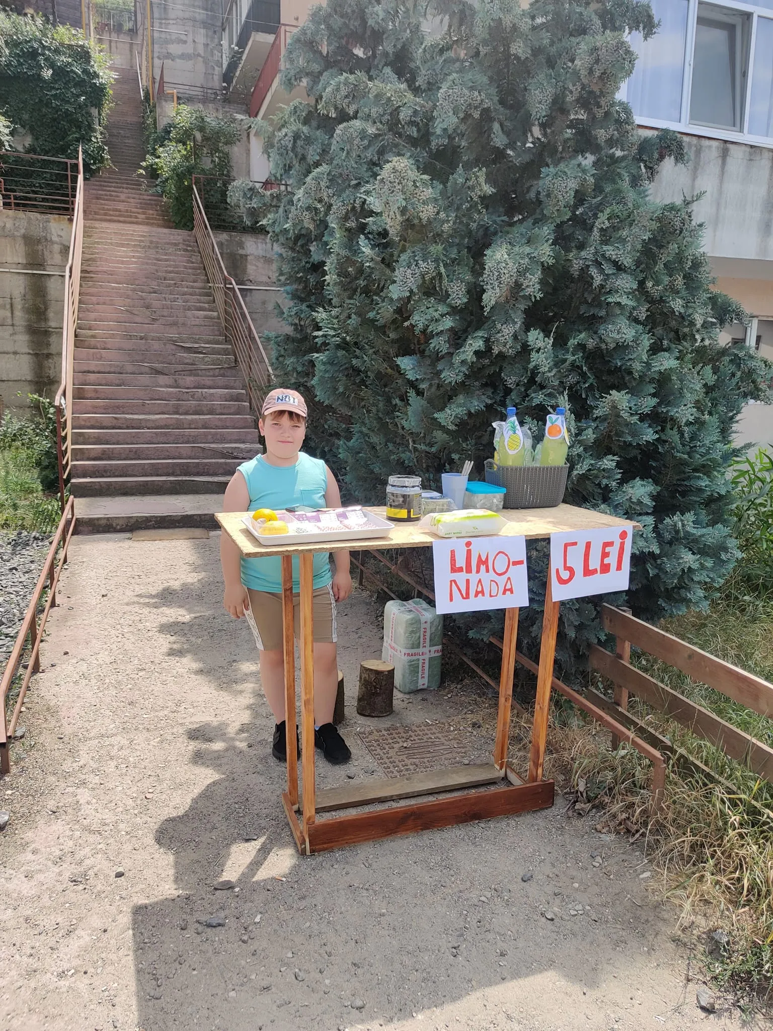 ”Micii întreprinzători din cartierul nostru (Dâmbu Rotund)! Mulțumim celor care au apreciat și au cumpărat limonada pregătită cu multă dragoste! Bucuria banului muncit, nu are egal. Va așteptăm la o limonada rece!”.