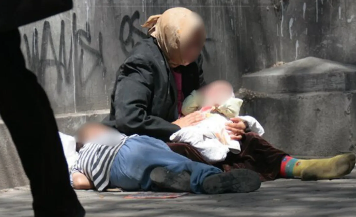 Copii folosiți la cerșit, în centrul Clujului! O mamă cu trei minori, inclusiv un bebeluș văzuți pe o stradă circulată: „Poate fi cerșetorie organizată”