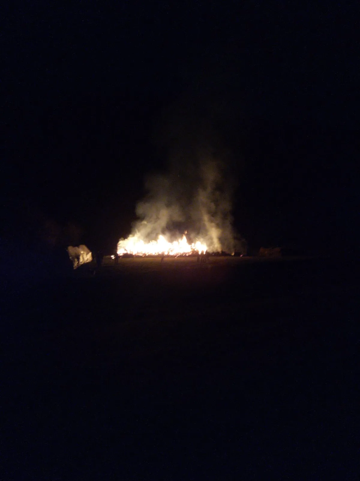 Pompierii au intervenit cu mijloace de primă intervenție pentru a limita propagarea flăcărilor și pentru a desface focarele care au ars mocnit, pe parcursul întregii nopți, iar un echipaj de pompieri este în continuare prezent la fața locului, pentru a supraveghea și limita extindere flăcărilor la alte obiective din apropiere, respectiv două șire de paie, situate la o distanță de cca 5m. Depozitul a fost distrus în totalitate, precum și cca 6 tone de baloți de fân.