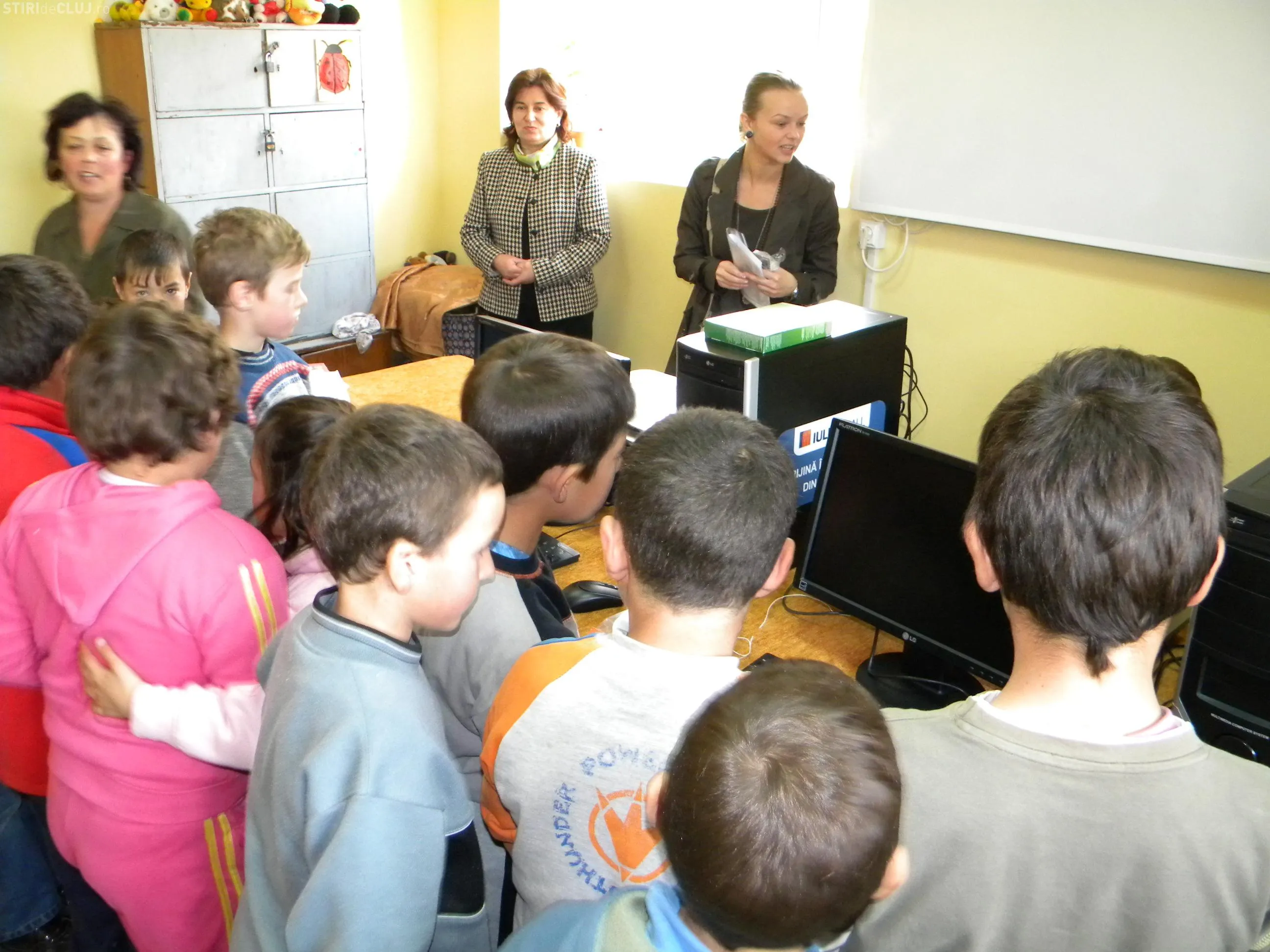 Copiii din Ghirolt, un sat uitat de lume din judetul Cluj, au primit calculatoare din partea Iulius Mall - FOTO si VIDEO