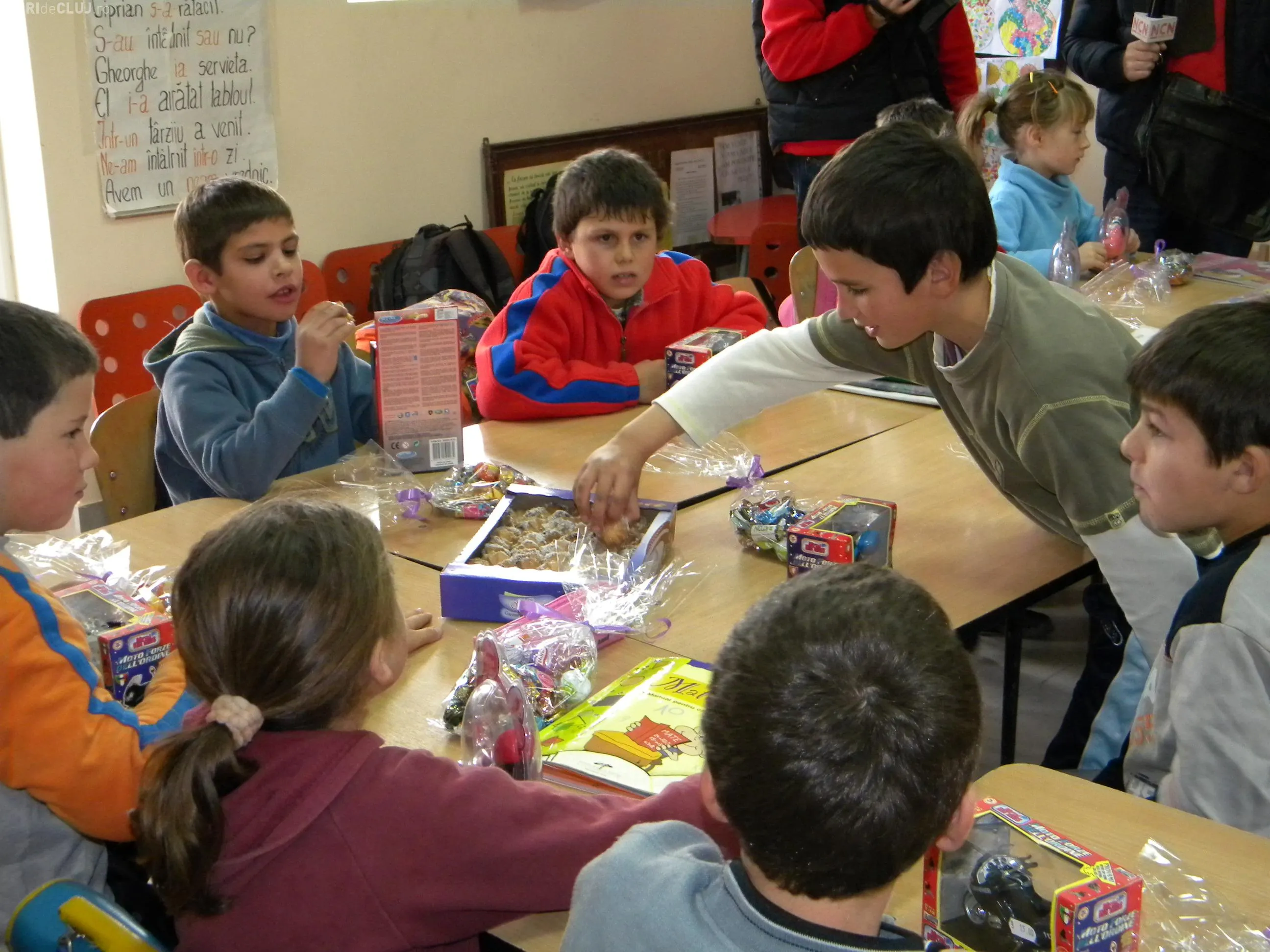 Prin campania "1 like = 1 Leu = 1 Zambet", initiata de Iulius Mall pe Facebook, s-a reusit cumpararea a trei calculatoare care astazi au fost donate scolii. Copiii au mai primit dulciuri si cate o jucarie. Bucuria a fost mare atat in randul pustilor de la gradinita, cat a celor de la scoala.
