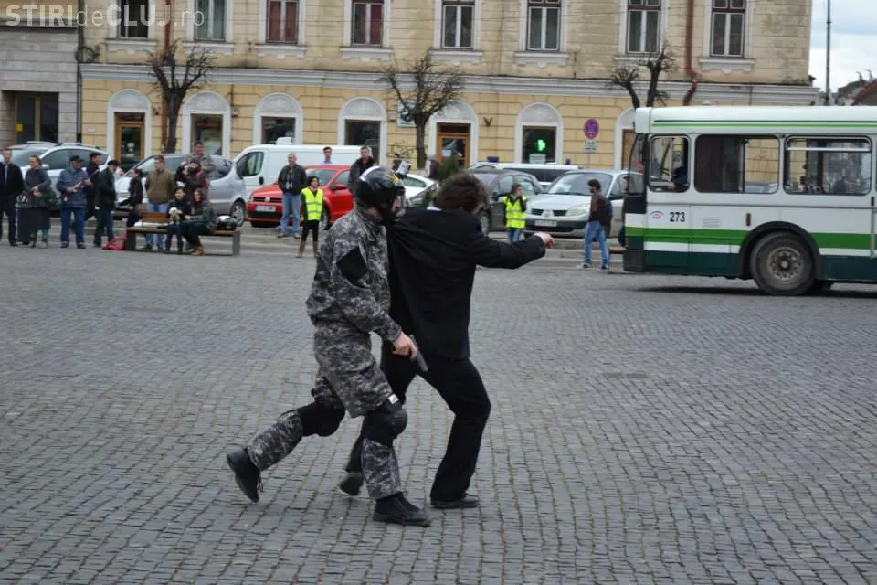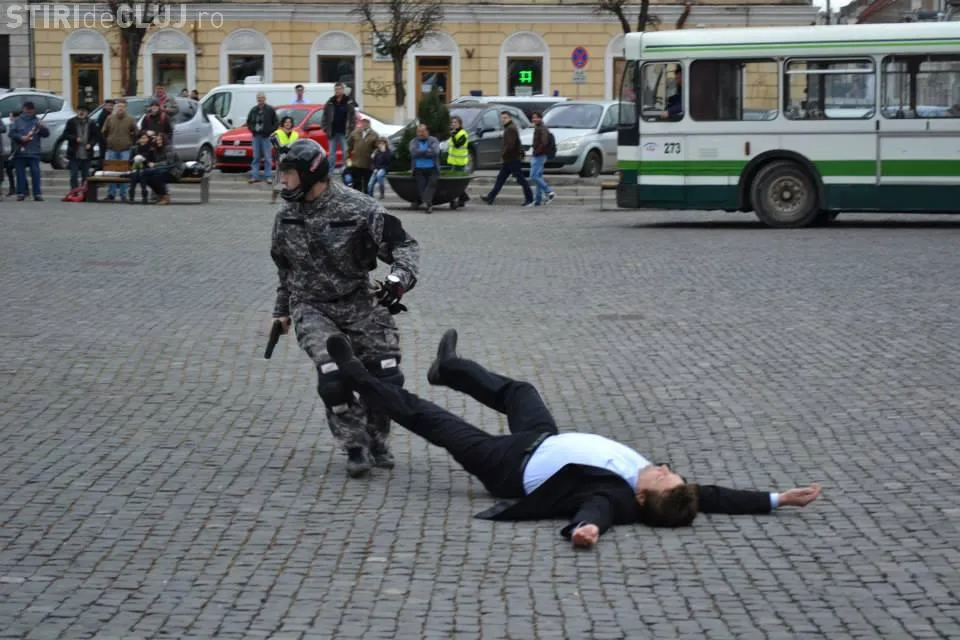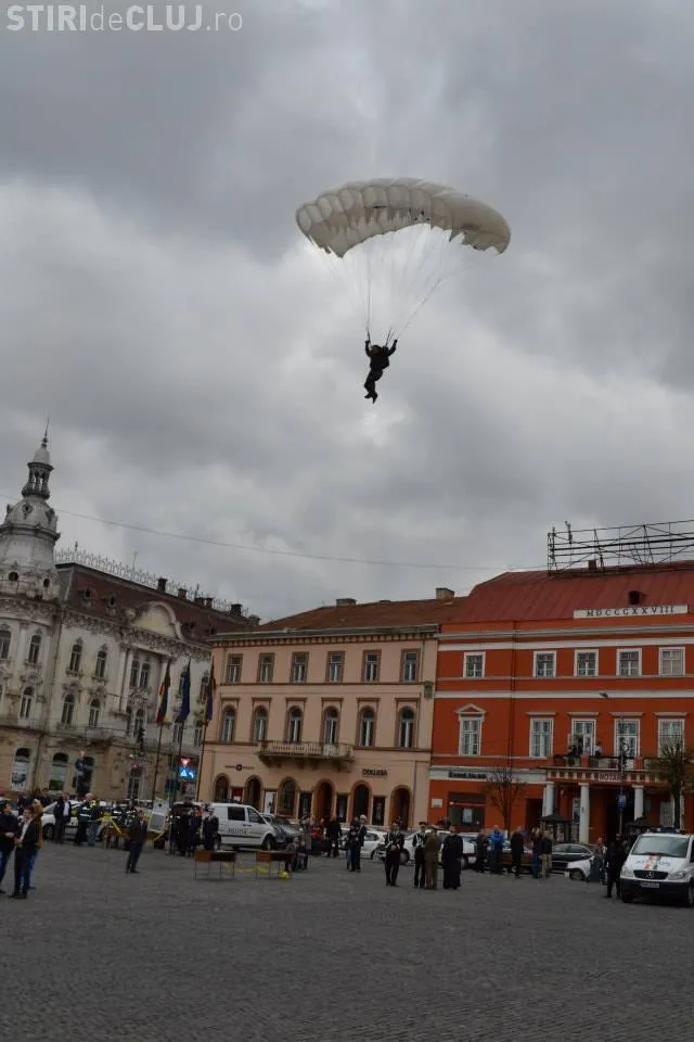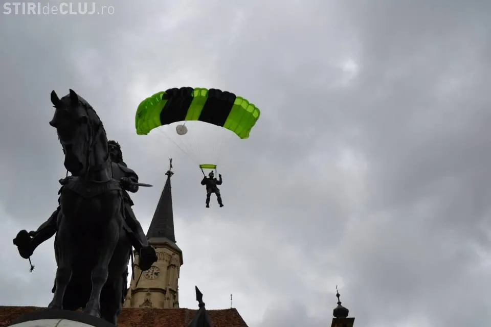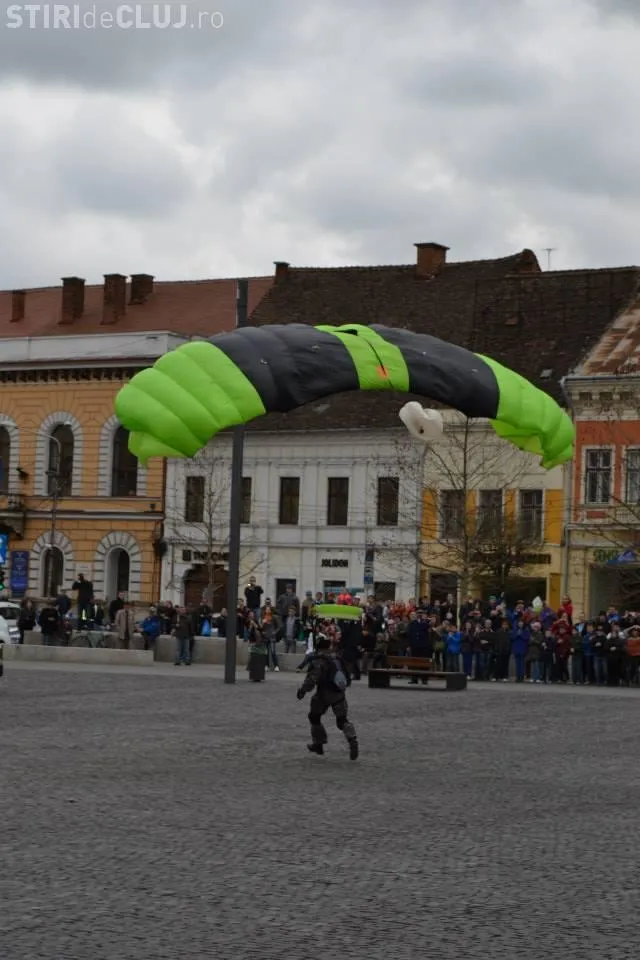 Elementul surpriză a fost o demonstrație a profesionalismului luptătorilor Serviciului pentru Acțiuni Speciale Cluj, exercițiu realizat cu sprijinul parașutiștilor Clubului Sportiv Privat ”SKY DIVE TRANSILVANIA”, precizează reprezentații IPJ Cluj.