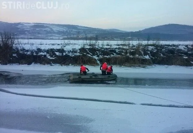 Pompierii din Gherla intervn la acest caz cu o barca pneumatica si sparg gheața cu ajutorul unor topoare pentru a-l găsi pe copil, conform gherlainfo.ro.