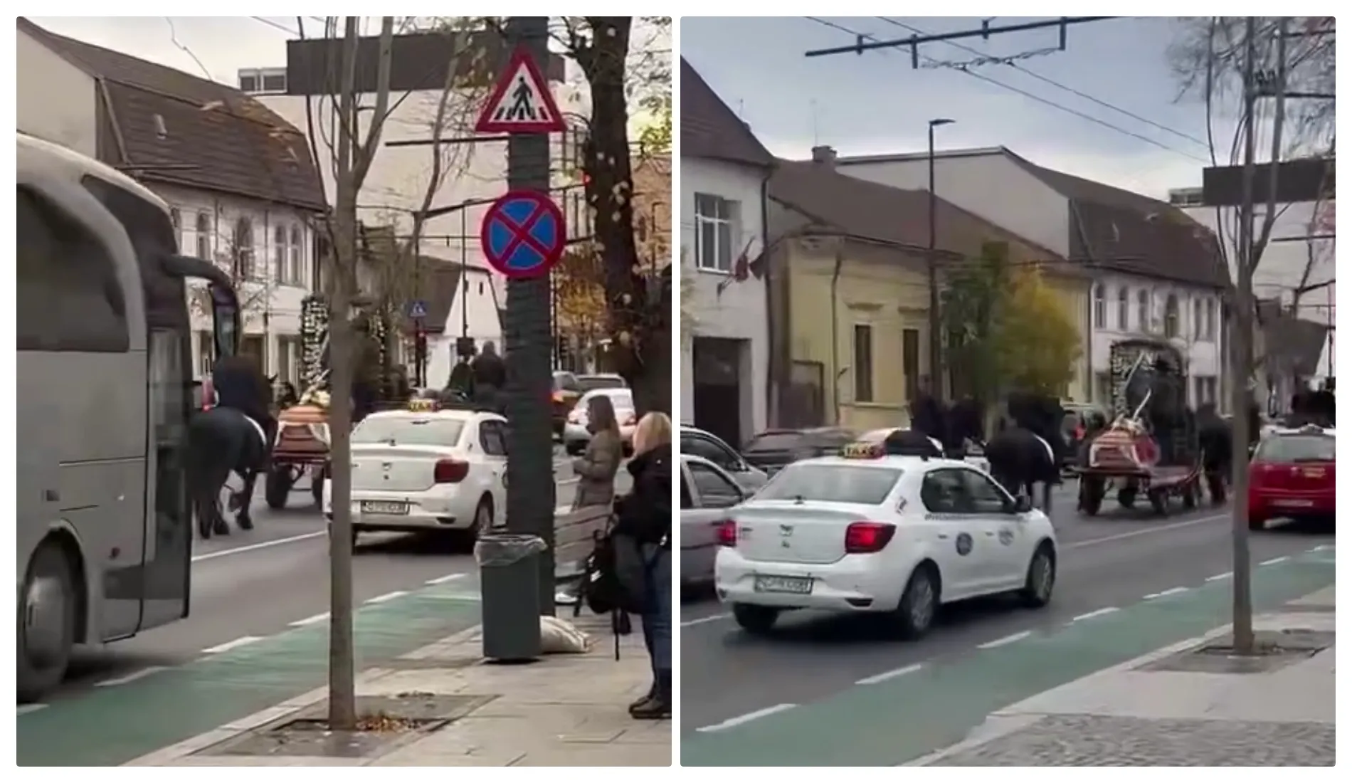 Sicriul era amplasat pe o căruță, iar din alai mai făceau parte 4 călăreți. Clujenii au fost surpinși să vadă astfel de scene în plin trafic.