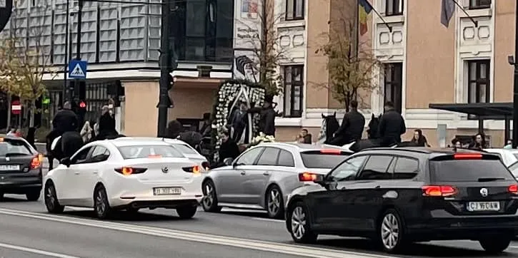 Un cortegiu mortuar inedit a fost filmat în centrul Clujului, mai precis pe Bulevardul 21 Decembrie 1989, aproape de Regionala CFR Cluj.