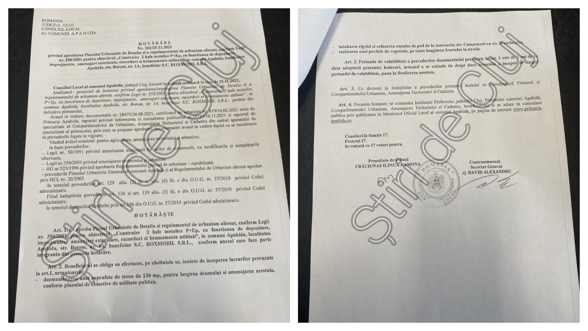,,Ideea este în felul următor, în fața casei mele s-au construit două hale. Am reușit să intru în posesia hotărârii de Consiliu pentru că tot timpul când încercam să vorbesc cu patronul să-i spun că ne deranjează praful, mizeria, TIR-urile care intră cu marfă și fac zgomot, el la toate astea răspundea că «Eu sunt în regulă. Am hotărârea de la Consiliu și nu ai ce să îmi faci». Atunci am zis că vreau să văd și eu acea hotărâre să văd ce este prevăzut. Am reușit să intru în posesia ei. Doamna primăriță din Apahida nu m-a amânat sau eschivat, a căutat-o și mi-a trimis-o", a povestit clujeanca pentru Știri de Cluj.