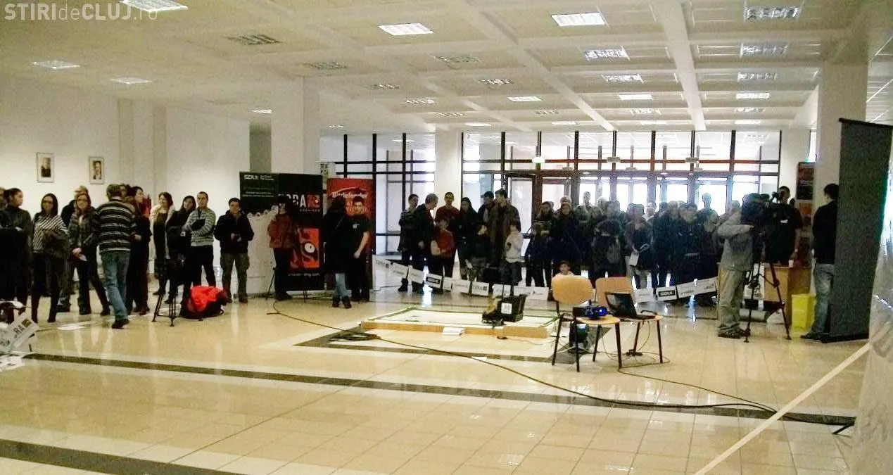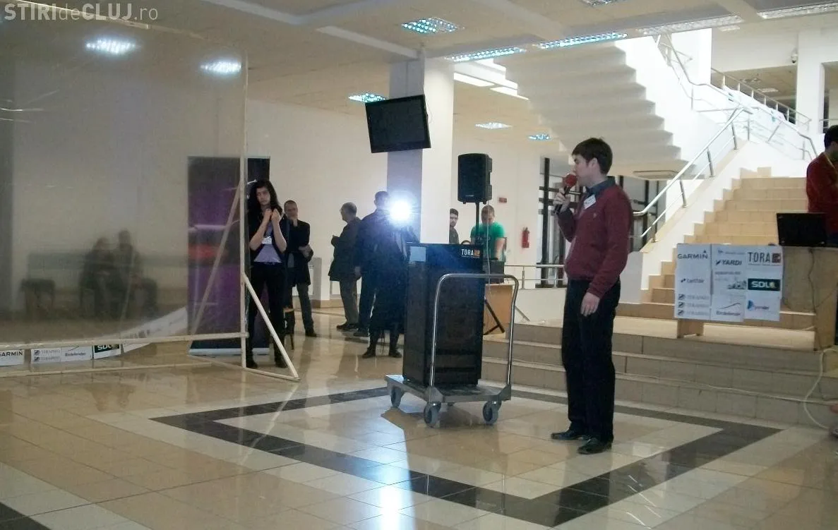 Cosul de gunoi care vorbeste le-a fost prezentat celor care s-au strans duminica, 4 martie, de "Ziua robotilor inteligenti", in cladirea Campus ISE, a Facultatii de Stiinte Economice si Gestiunea Afacerilor, de pe strada Teodor Mihali.
