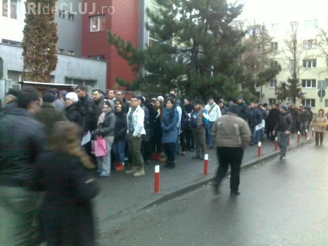 Sute de clujeni așteaptă la cozi imense pe strada Albac, la Serviciul de Permise auto din Cluj-Napoca, pentru a-și schimba permisele de conducere.