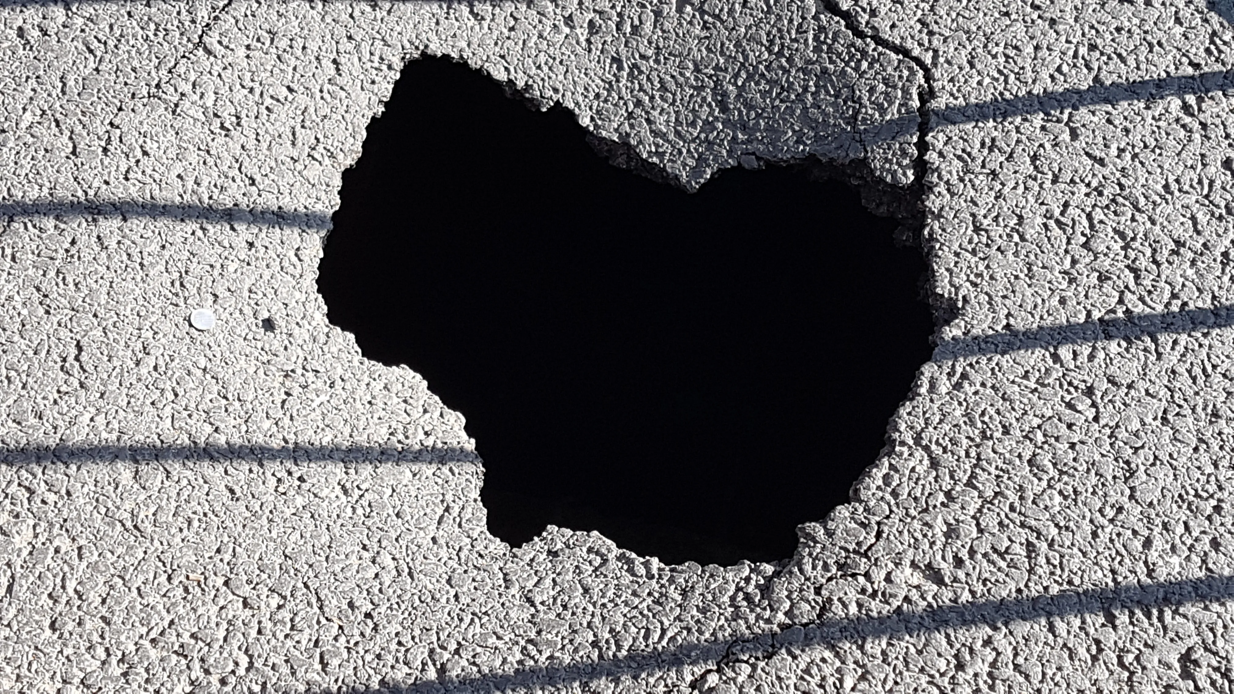 Garanția a fost de numai 3 ani de zile, pentru că, în martie 2022, craterul a reapărut. ”Fain frumos”, cum ar spune ardeleanul, drumul s-a surpat în același loc. După cum se vede, drumul a cedat exact în petecul decupat de cei de la RAPD, acum 3 ani.