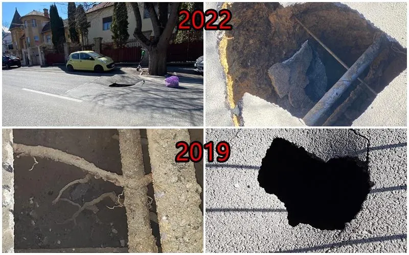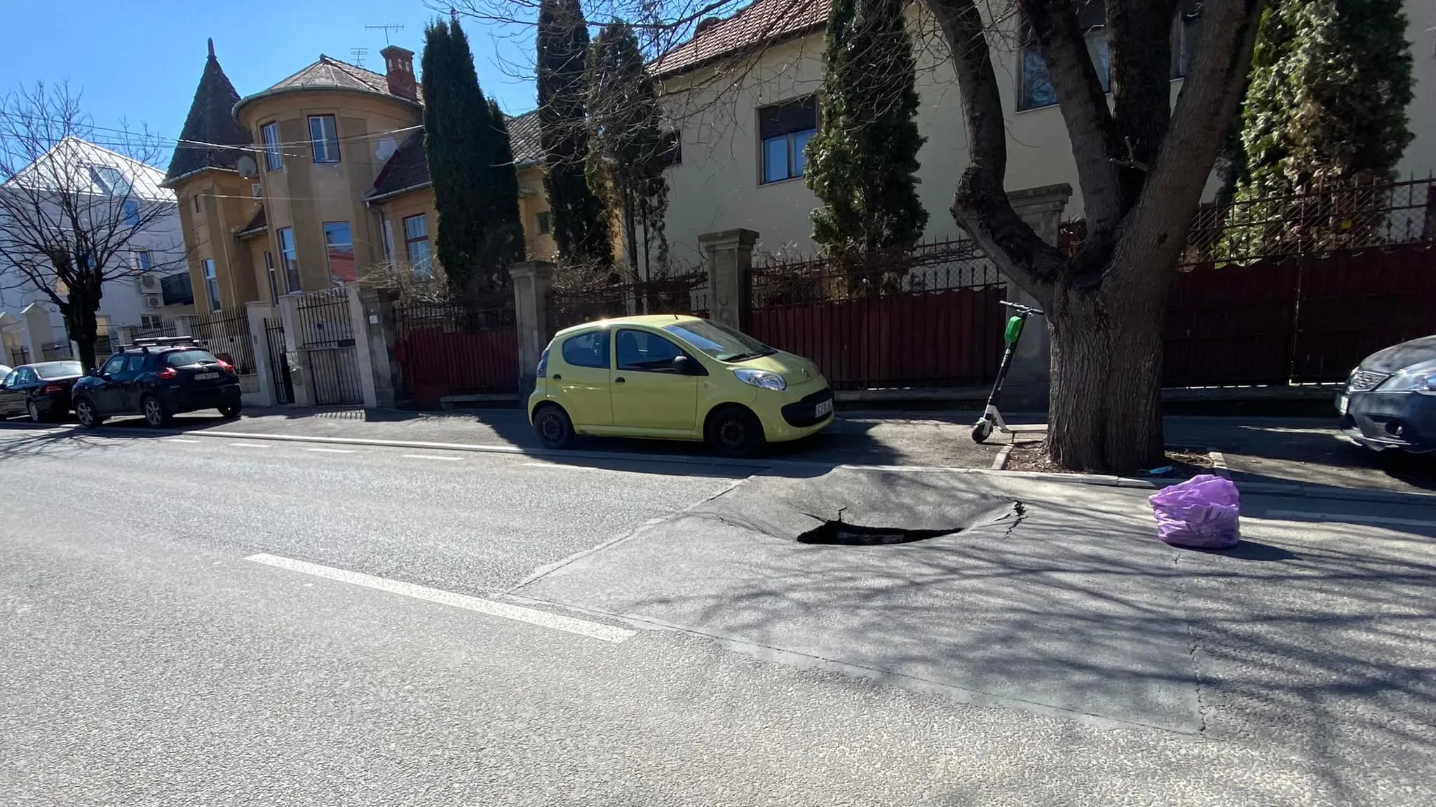 Știri de Cluj a scris AICI acum 3 ani despre craterul de pe Andrei Mureșanu. Lucrarea celor de la RADP Cluj a fost o cârpeală ieftină, care nu a ținut.