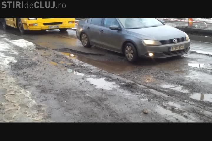 Un crater de-a dreptul uriaș a fost filmat de un cititor Știri de Cluj, pe Bulevardul Muncii, în dreptul sediului Universității Tehnice din Cluj-Napoca.