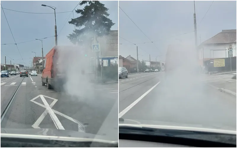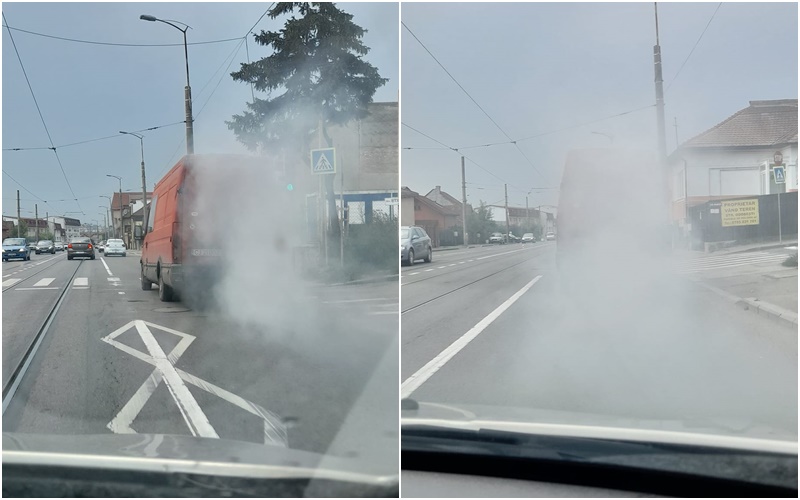 Șoferul unei dube făcea o poluare atât de puternică pe Bulevardul Muncii, din Cluj-Napoca, încât nu se vedea mașina de fum.