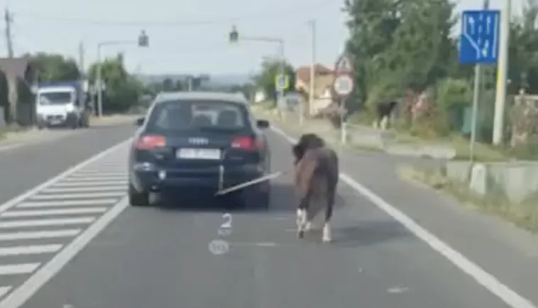 Cruzime care îți taie respirația: Un ponei, legat de mașină și forțat să alerge până la epuizare, poliția nu a avut niciun răspuns