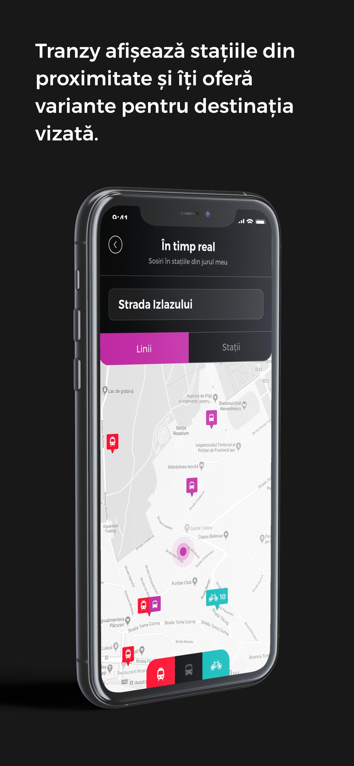 Tranzy este disponibilă în două versiuni de limbă – romȃnă și engleză, și cuprinde și o serie de informaţii utile cu privire la bilete și abonamente, plata cu cardul sau durata de valabilitate a călătoriei.