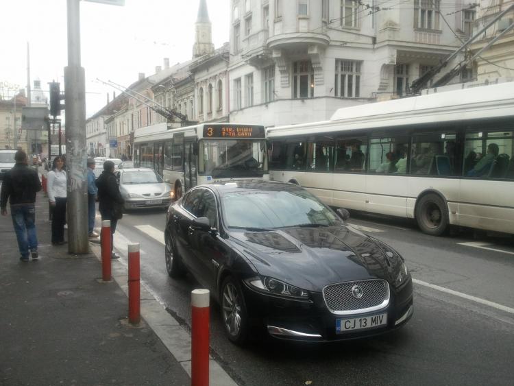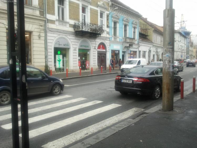 Șoferul unui bolid marca Jaguar a parcat cum l-a tăiat capul pe strada Regele Ferdinand, blocând o bandă de mers și pe toți participanții la trafic.
