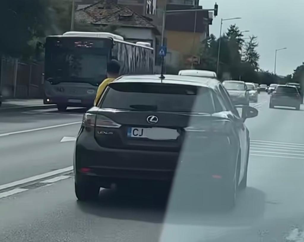 Culmea inconștienței! Șofer surpins în timp ce conduce ieșit pe geamul mașinii, pe un drum din Cluj-Napoca - VIDEO