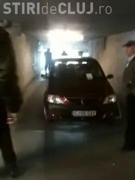 Un barbat si-a parcat masina in Parkingul Primariei Cluj-Napoca de pe strada Motilor chiar pe rampa de acces/iesire. Angajatii i-au blocat roata si accesul in parking a fost dat peste cap.
