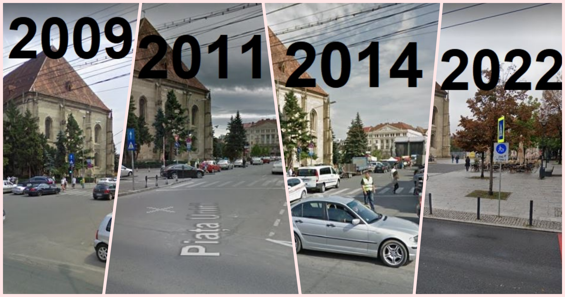Cum a evoluat Piața Unirii din 2009 până în 2022. Strada de pe latura vestică a dispărut din 2018 - FOTO