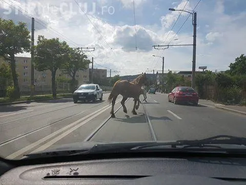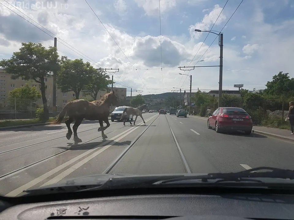 Cum aleargă caii, liberi, pe stradă la Cluj FOTO