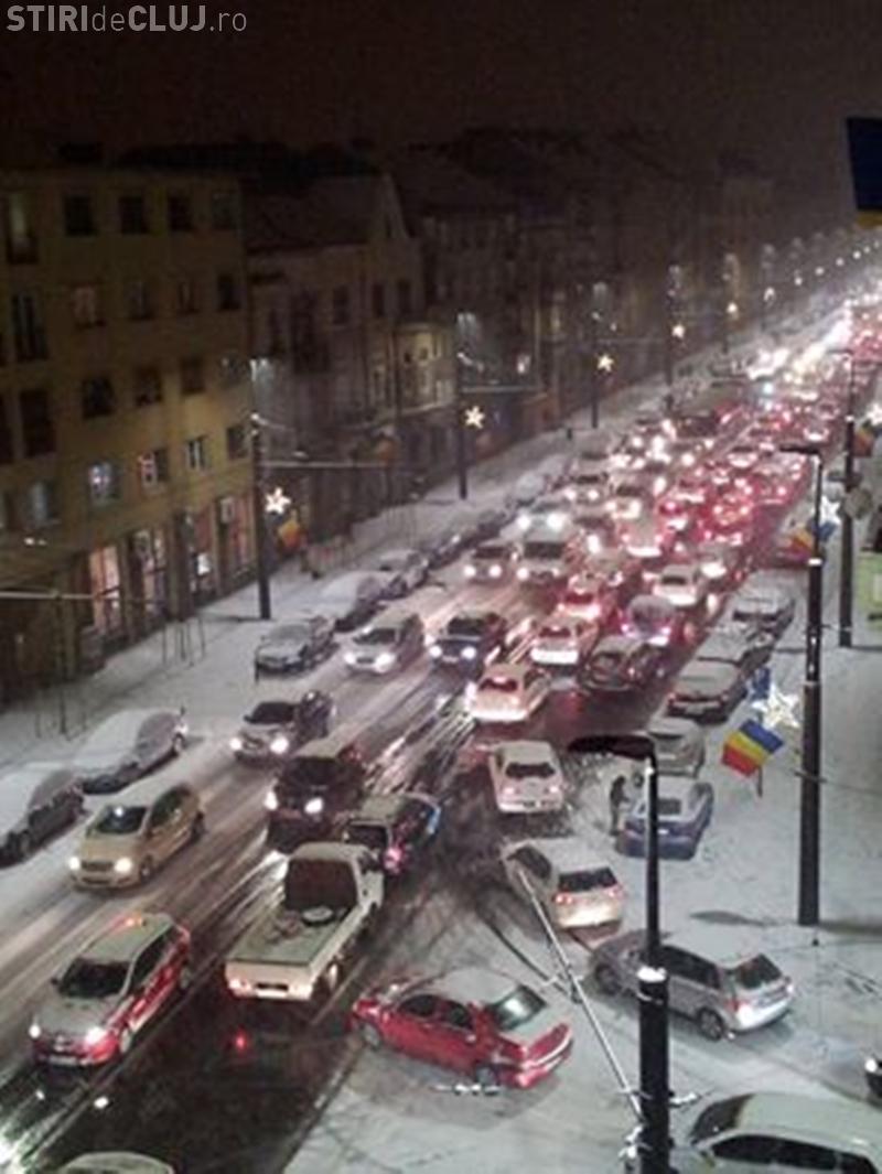 După cum se poate vedea și în fotografia publicată de Știri de Cluj, pe stradă este un număr impresionant de mașini, iar șoferii dau vina pe zăpadă pentru blocajul creat.
