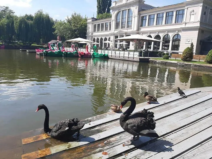 O pereche de lebede negre încântă clujenii aflați în vizită în Parcul Central, la lacul Chios.