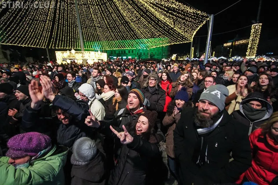 Cum au petrecut clujenii REVELIONUL în Piața Unirii. Un EROU de la Colectiv a urcat pe scenă - FOTO