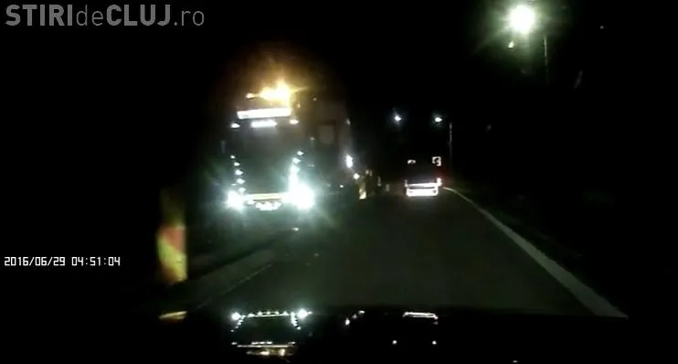 Cum blochează un transport agabaritic traficul pe un drum din Cluj, din cauza bordurilor de delimitare VIDEO