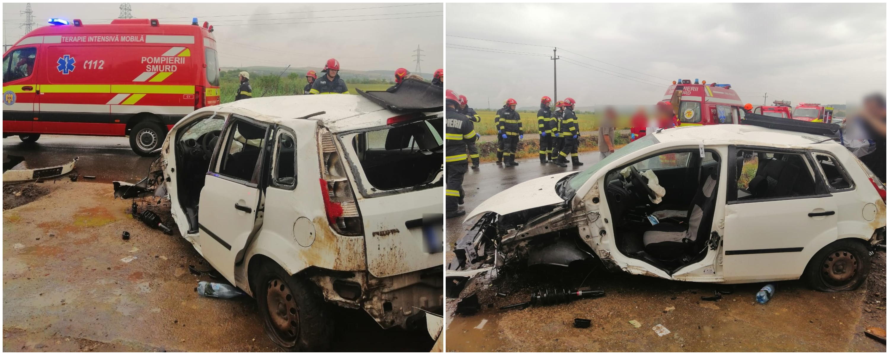 Incidentul, în care a fost implicat un singur autoturism, s-a produs în condiții de carosabil umed, în urma unei ploi torențiale, și s-a soldat cu rănirea a trei persoane.
