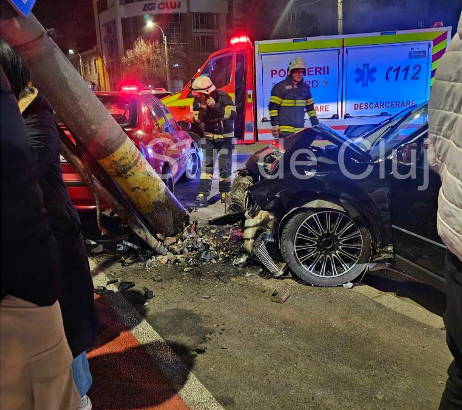 Cum s-a produs accidentul de azi-noapte din Cluj: Tânăr de 25 de ani rănit, după ce a intrat în stâlp! A fost victima altui tânăr de 22 de ani VIDEO /FOTO