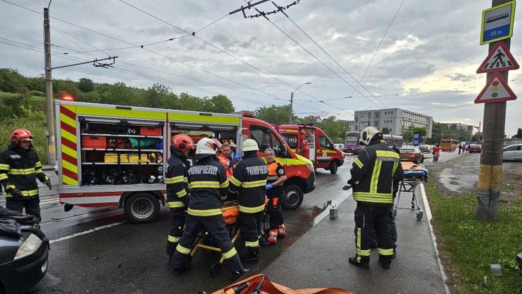 În urma impactului au fost rănite 3 persoane, respectiv o femeie de 47 de ani, aflată la volanul unui autoturism, și 2 pasageri adulți.