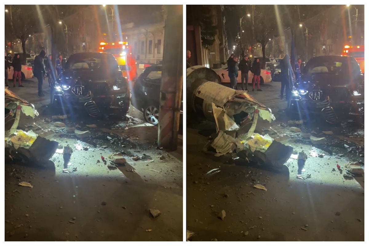 Cum s-a produs accidentul de azi-noapte de pe Calea Dorobanților: Șoferul unui BMW X6 a tras brusc de volan și a ajuns pe trotuar