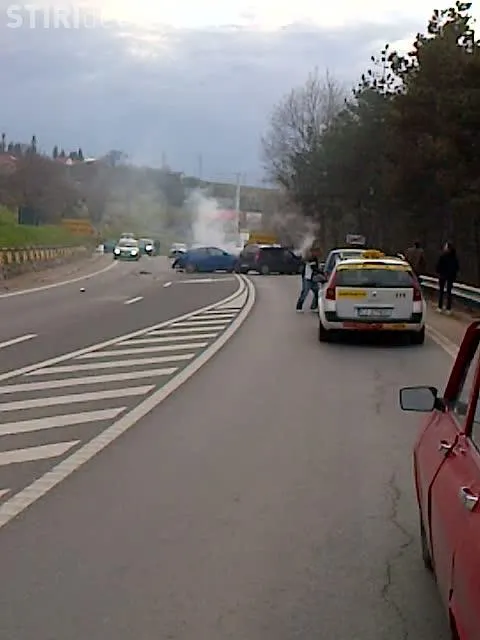 Imagini de la accidentul de pe Feleac! Din masinile implicate iesea fum VIDEO