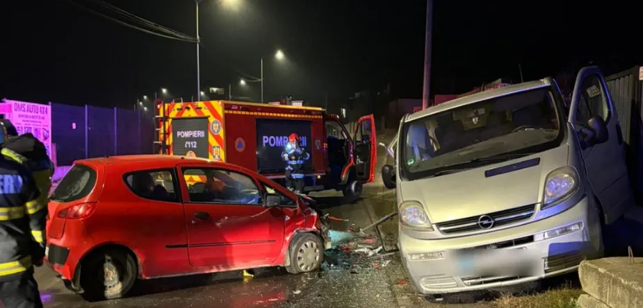 Un tânăr de 24 de ani a pierdut controlul autilitarei pe care o conducea și a lovit o mașină aflată pe contrasens.