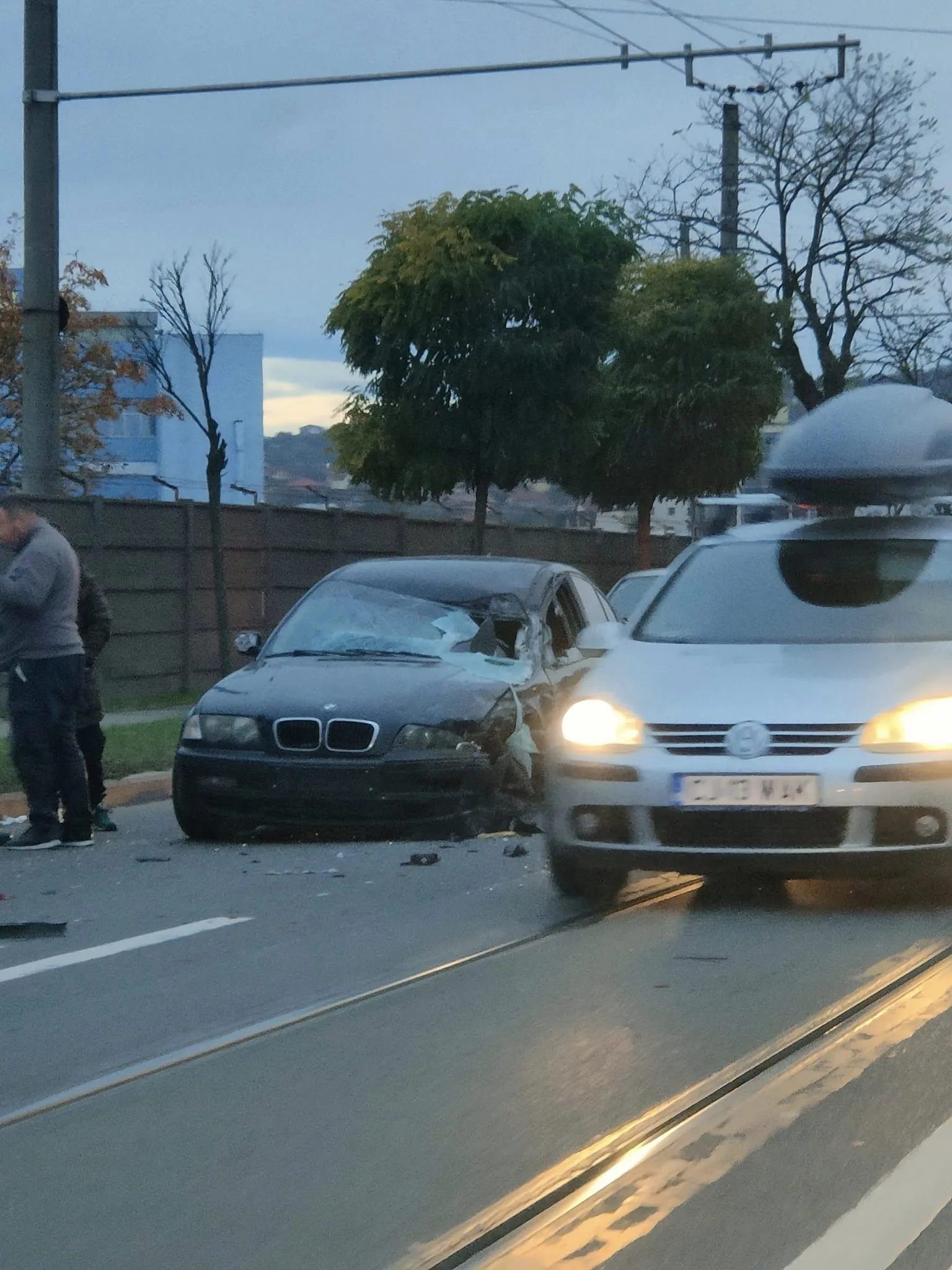 Un BMW a fost avariat serios, vineri dimineața, pe Bulevardul Muncii din Cluj-Napoca.