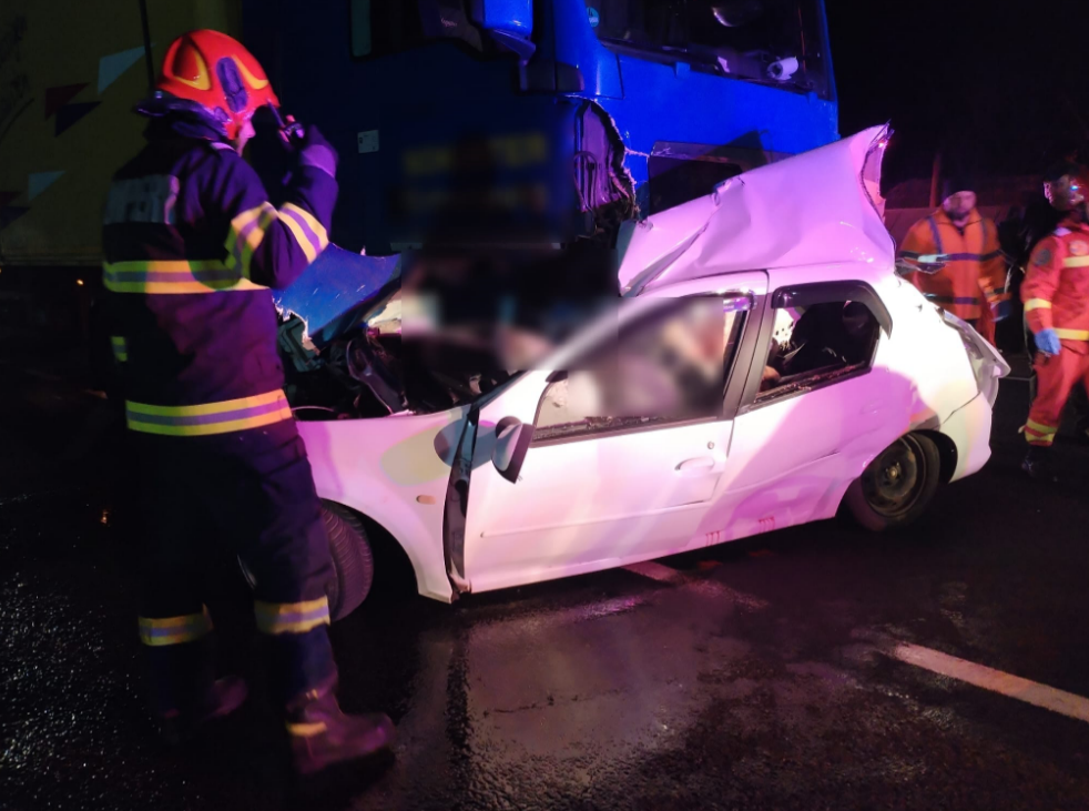 Autoturismul a intrat în coliziune frontală cu un ansamblu de vehicule format din cap tractor și semiremorcă, condus regulamentar de un bărbat de 37 de ani din comuna Poieni.