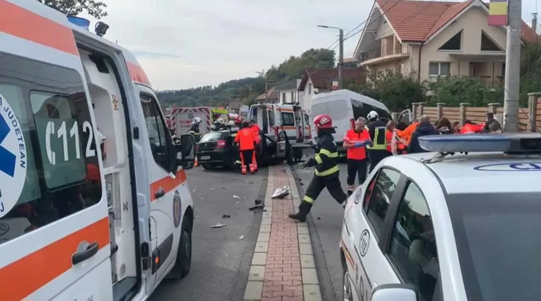 Cum s-a produs accidentul grav din Feleacu: Un șofer de 20 de ani a pătruns pe sensul opus de mers, 16 persoane au ajuns la spital