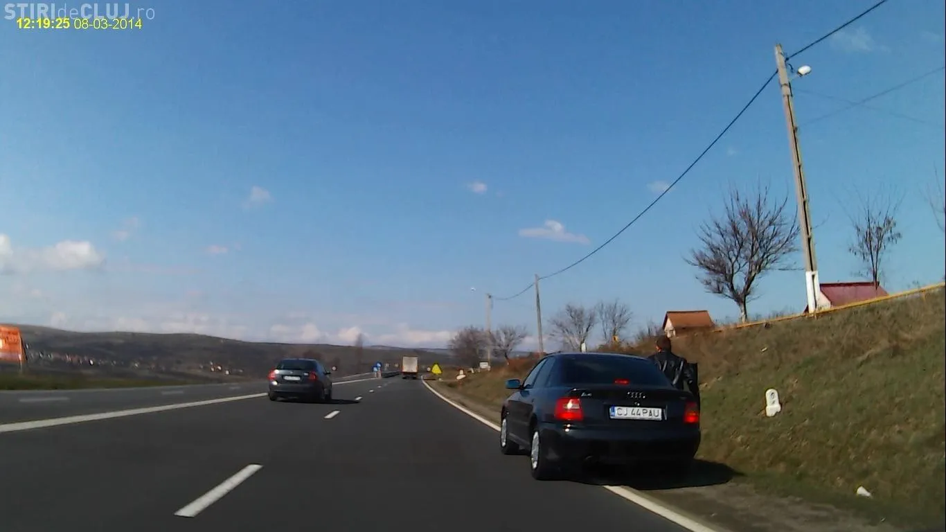 Cum se abandonează o pisică la Cluj! Un șofer a blocat mașina din care era aruncat animalul - VIDEO