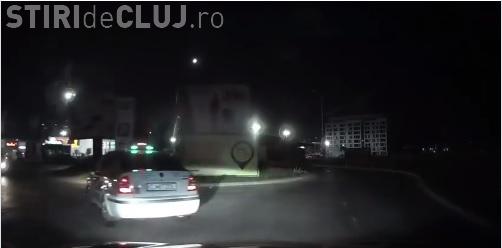 Cum se conduce un taxi la Cluj! A intrat invers în sensul giratoriu FOTO
