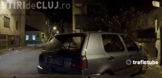 Cum se dărâmă un stâlp cu mașina la Cluj VIDEO