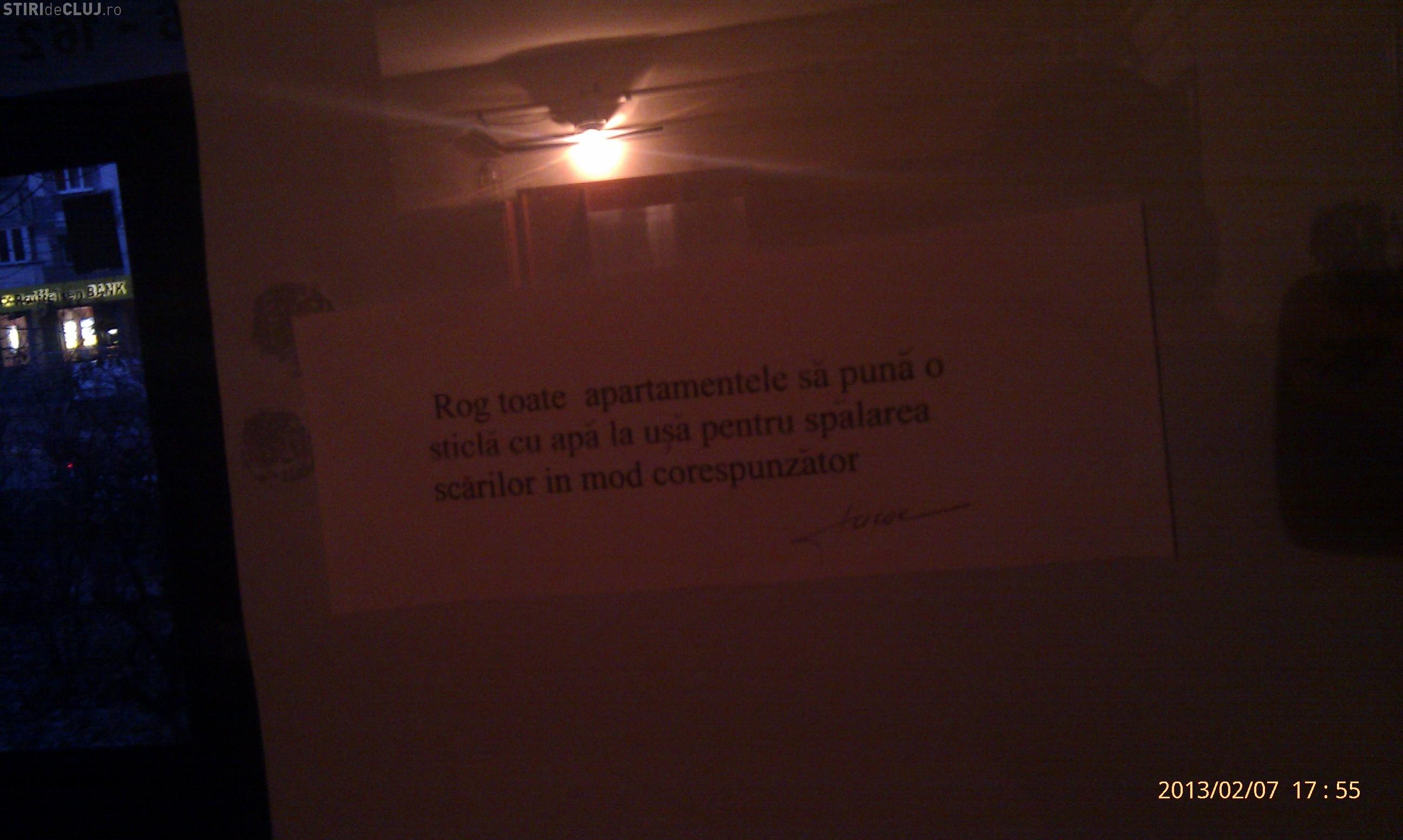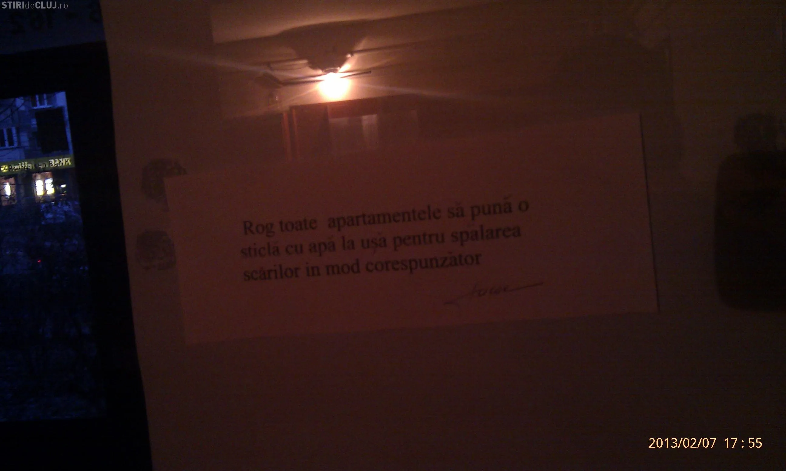 Locatarii unui bloc din Mănăștur au fost întâmpinați de un mesaj halucinant lăsat de administrator.
