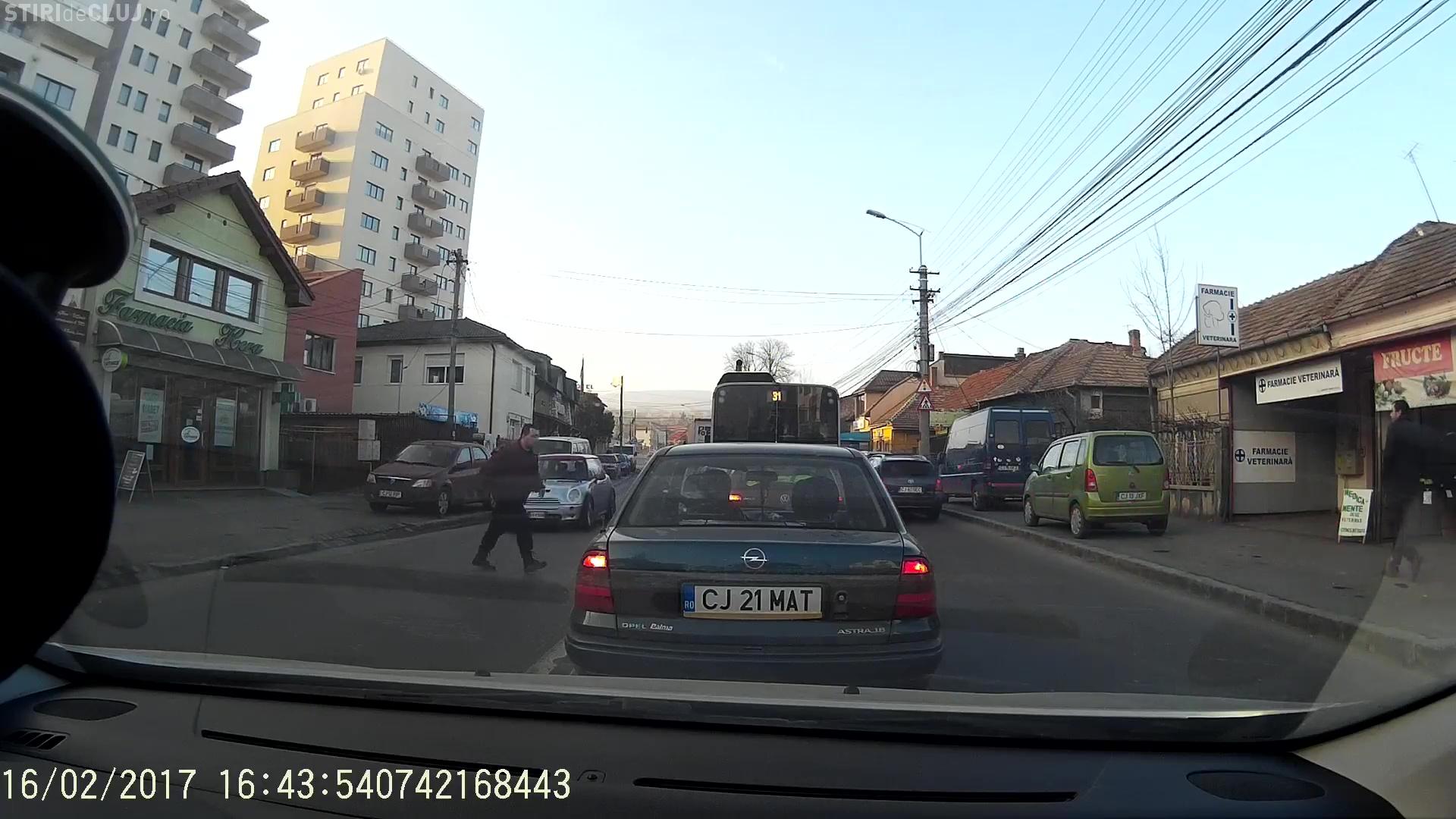 ”Cum se trece la Cluj strada.... De data asta a scapat, dar maine nu se stie cine va da cu subsemnatul la Politie din cauza unui aiurit”, ne-a relatat un cititor.