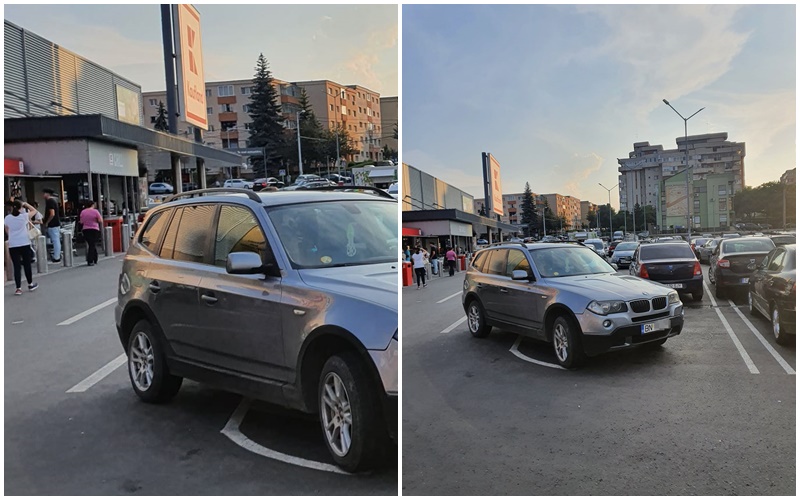 Șoferul unui BMW a fost fotografiat după ce a făcut o parcare de toată rușinea la un supermarket din Mănăștur.