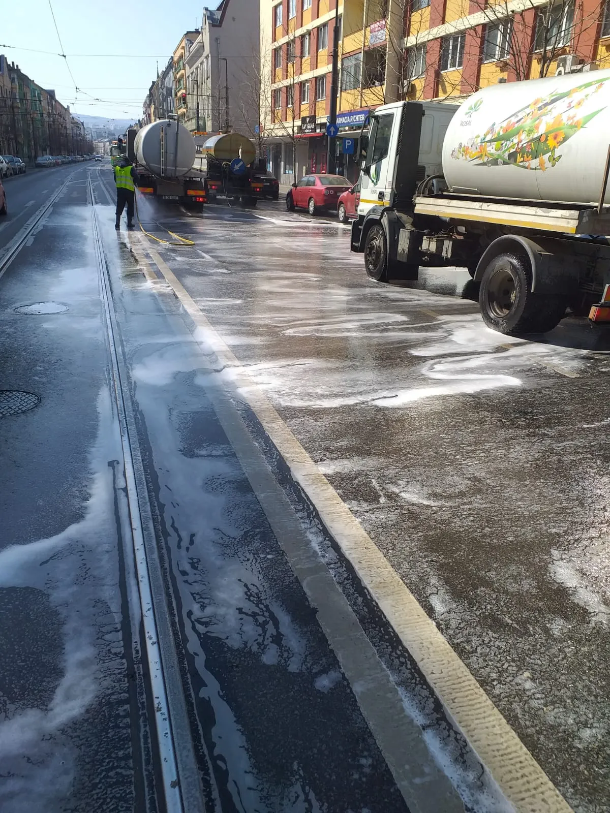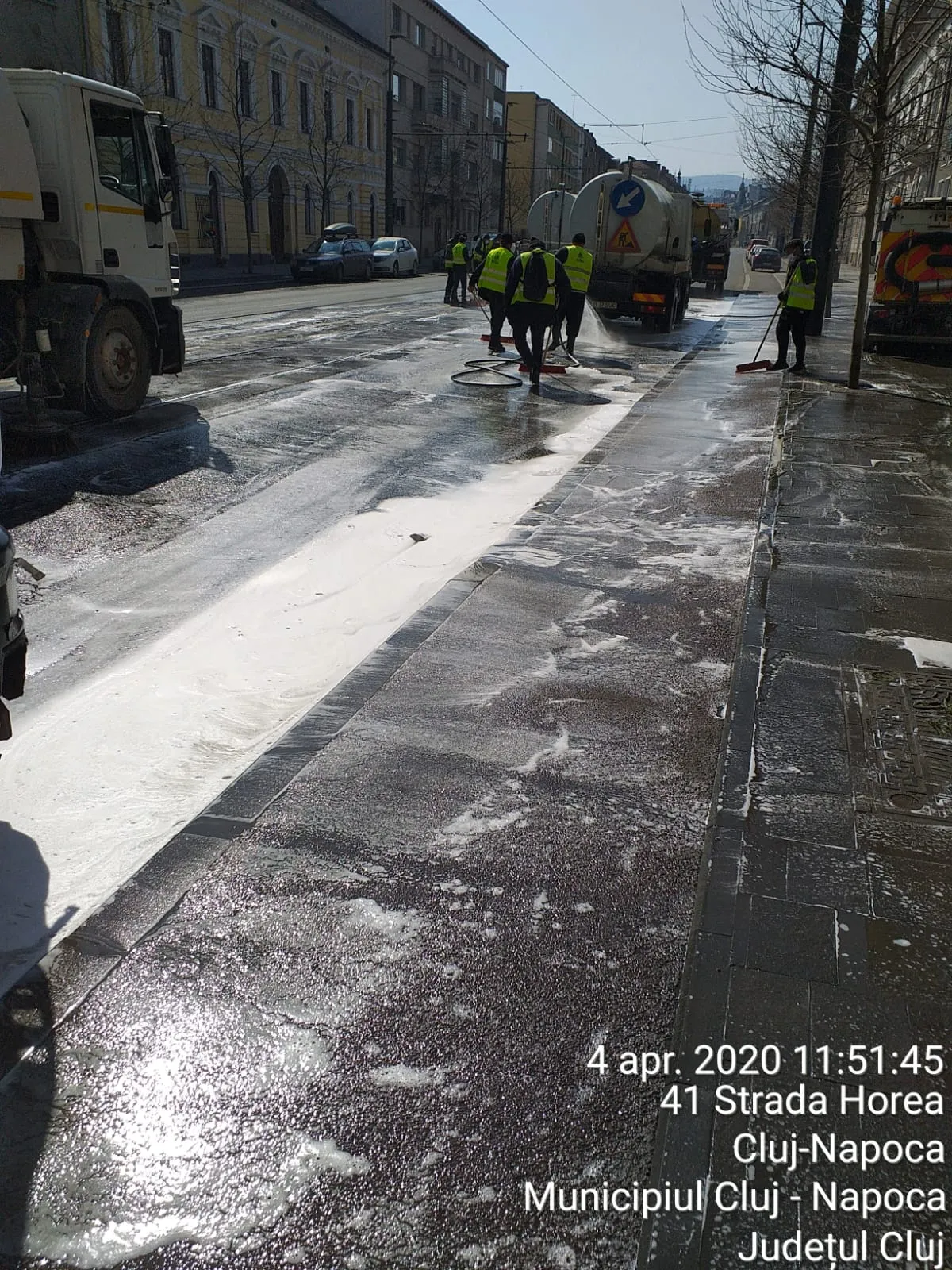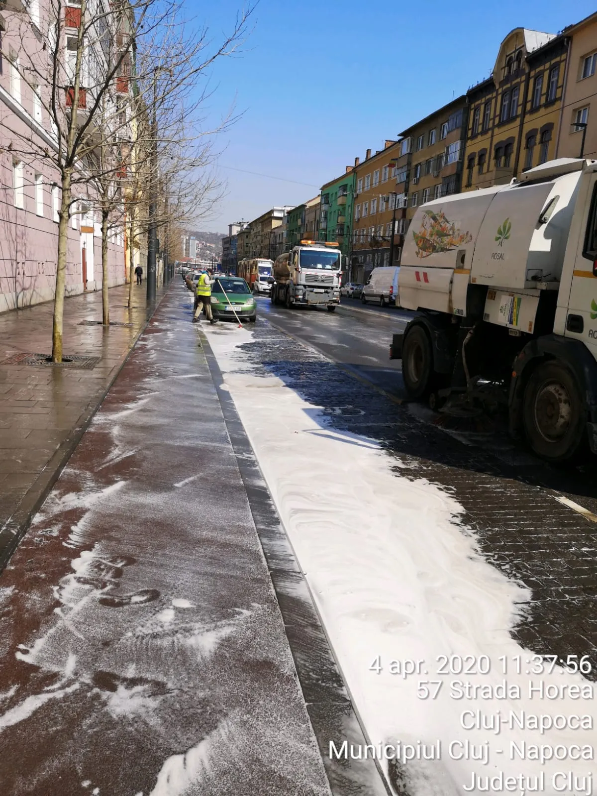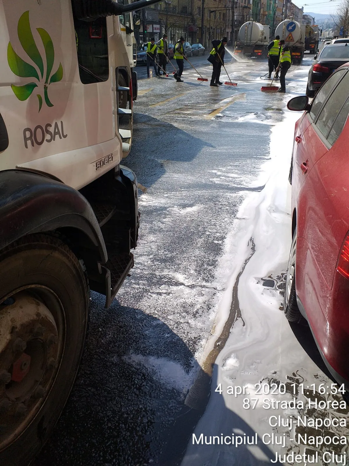 Echipele de curățenie stradală de la compania Rosal au spălat strada Horea și continuă spre Piața Mihai Viteazu, strada George Barițiu și apoi pe Splaiul Independenței. În cursul zilei de joi și vineri au fost spălate străzi din Mănăștur.