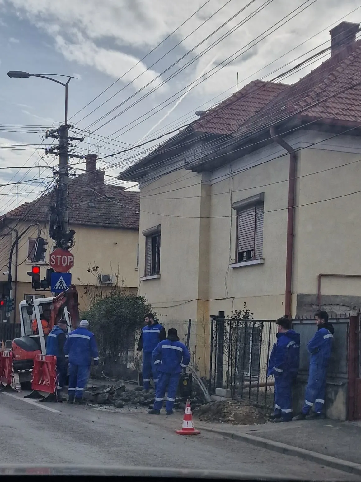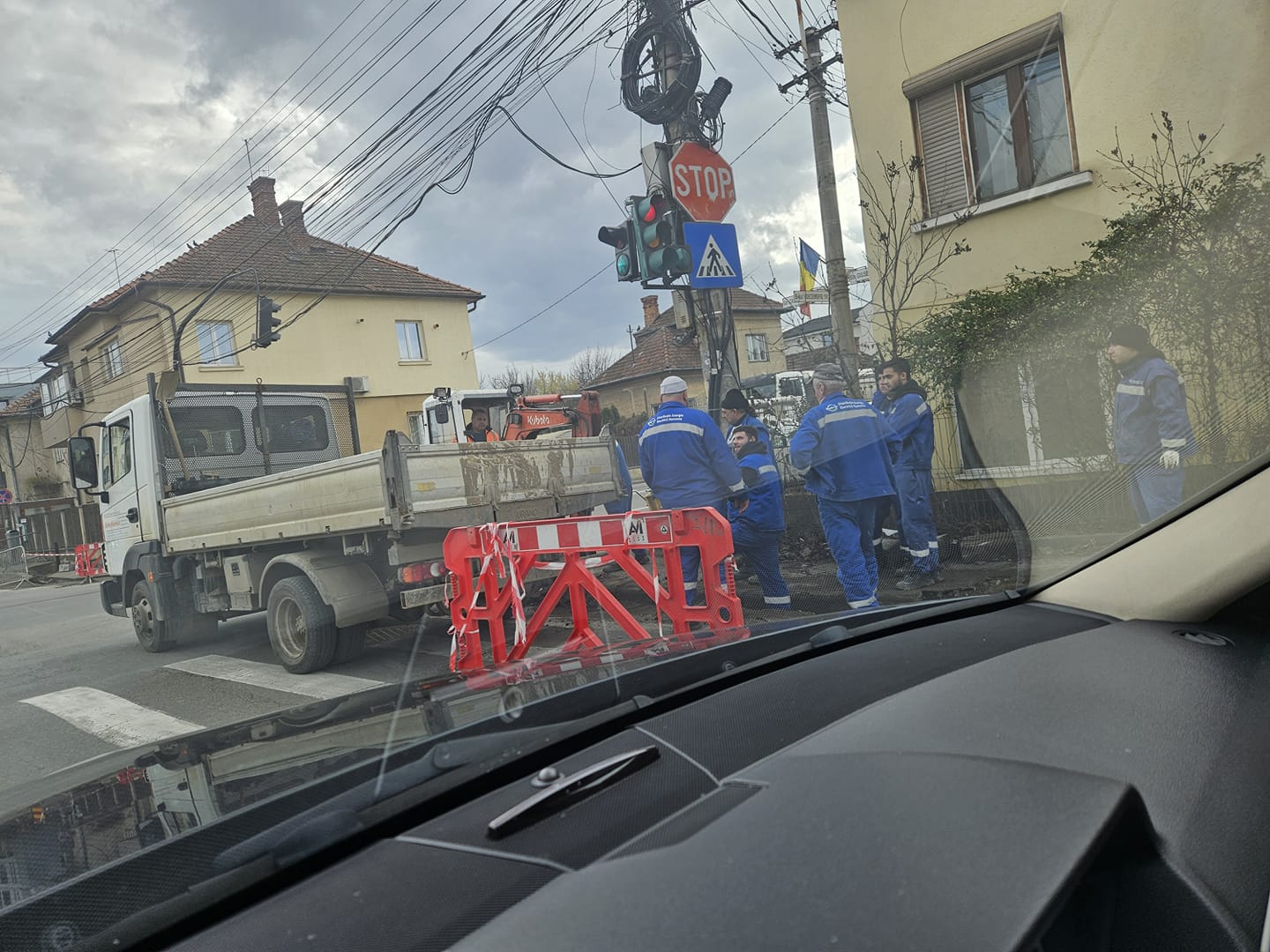 Cum stau ”Doreii” la o lucrare dintr-o zonă circulată din Cluj-Napoca: ”8 oameni stăteau si utilajul era manipulat de al 9-lea” - FOTO