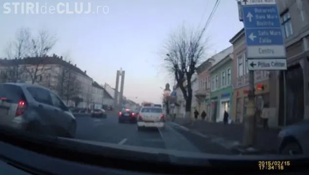 Un șofer clujean a surprins un echipaj al Poliției cum trece, fără cea mai mică problemă, pe culoarea roșie a semaforului, pe bulevardul Eroilor din Cluj-Napoca.