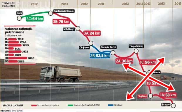 Ministrul Transporturilor, Dan Șova, a spus că Autostrada Transilvania a fost scurtată și nu va mai merge spre Brașov, ci spre Sebeș.